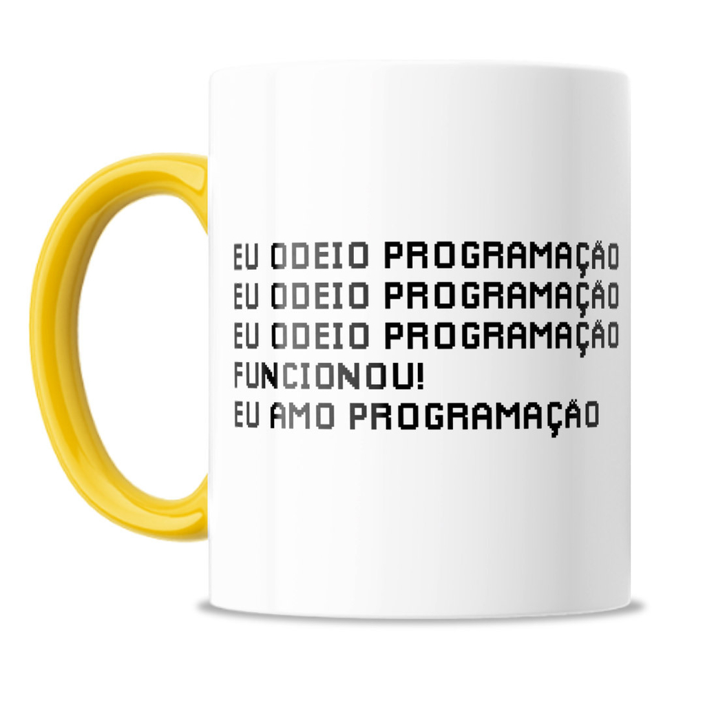 A Caneca Eu AMO programação é ideal para você presentear um programador ou até mesmo se auto-presentear :)